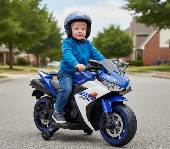 Kids R3 Ride On Bike Battery Operated Ride On For Kids With Hand Accelerator(3-8 Yrs) Blue